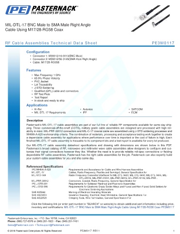 RF Cable Assemblies Technical Data Sheet PE3M0117