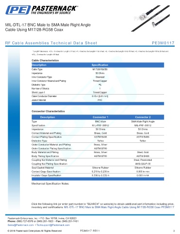 RF Cable Assemblies Technical Data Sheet PE3M0117