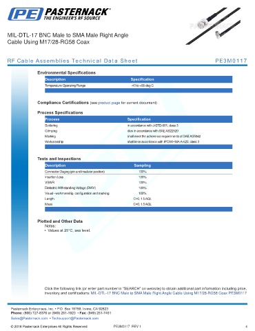 RF Cable Assemblies Technical Data Sheet PE3M0117