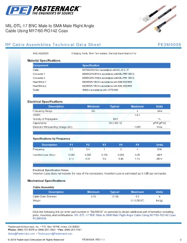 RF Cable Assemblies Technical Data Sheet PE3M0006
