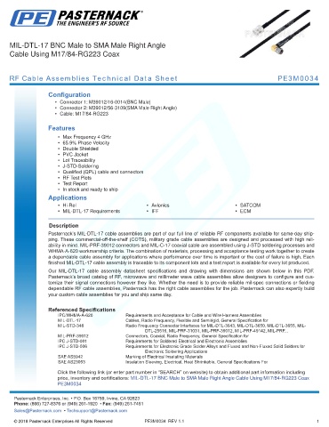 RF Cable Assemblies Technical Data Sheet PE3M0034
