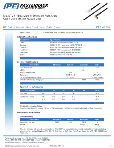 RF Cable Assemblies Technical Data Sheet PE3M0034