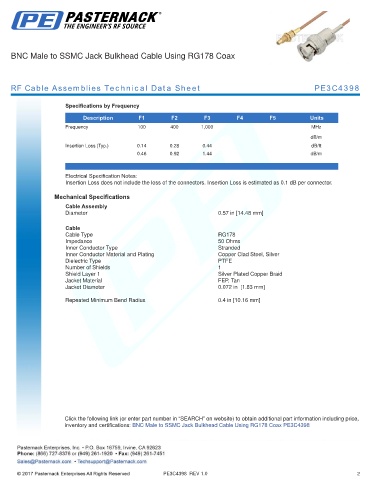 RF Cable Assemblies Technical Data Sheet PE3C4398