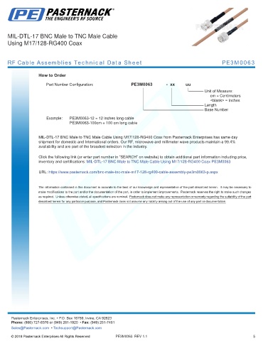 any representation or warranty regarding the suitability of the part described herein for any particular purpose, and Pasternack does not assume any liability arising out of the use of any part or documentation.