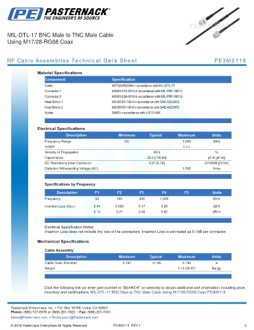 RF Cable Assemblies Technical Data Sheet PE3M0118