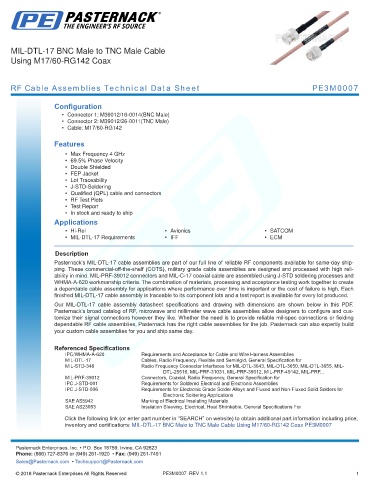 inventory and certifications: MIL-DTL-17 BNC Male to TNC Male Cable Using M17/60-RG142 Coax PE3M0007