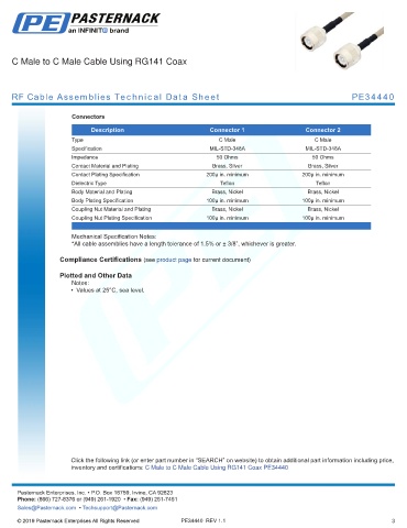 inventory and certifications: C Male to C Male Cable Using RG141 Coax PE34440