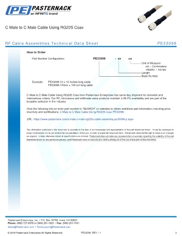 any representation or warranty regarding the suitability of the part described herein for any particular purpose, and Pasternack does not assume any liability arising out of the use of any part or documentation.