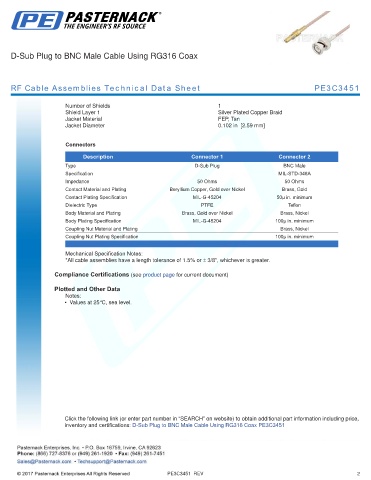 inventory and certifications: D-Sub Plug to BNC Male Cable Using RG316 Coax PE3C3451