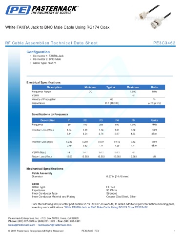RF Cable Assemblies Technical Data Sheet PE3C3462