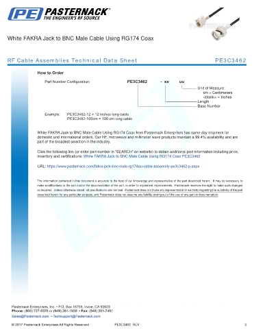 RF Cable Assemblies Technical Data Sheet PE3C3462