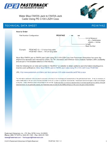 inventory and certifications: Water Blue FAKRA Jack to FAKRA Jack Cable Using PE-C100-LSZH Coax PE38746Z