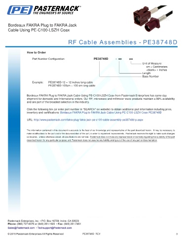 inventory and certifications: Bordeaux FAKRA Plug to FAKRA Jack Cable Using PE-C100-LSZH Coax PE38748D