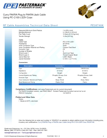 RF Cable Assemblies Technical Data Sheet PE38748K