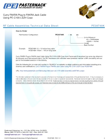 RF Cable Assemblies Technical Data Sheet PE38748K