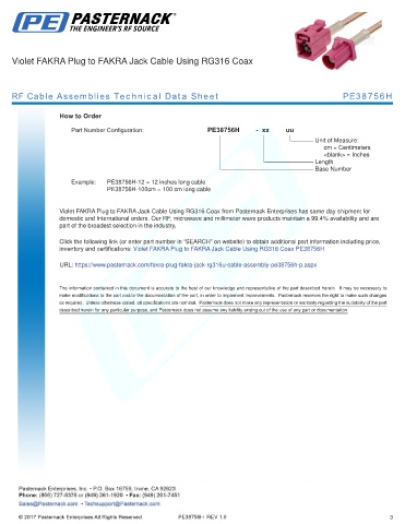 inventory and certifications: Violet FAKRA Plug to FAKRA Jack Cable Using RG316 Coax PE38756H