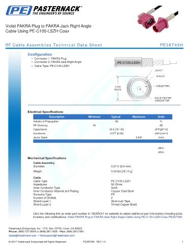 RF Cable Assemblies Technical Data Sheet PE38749H