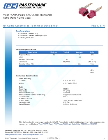RF Cable Assemblies Technical Data Sheet PE38757H