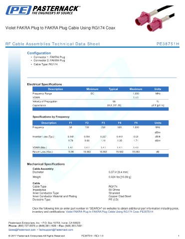 inventory and certifications: Violet FAKRA Plug to FAKRA Plug Cable Using RG174 Coax PE38751H