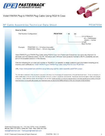 RF Cable Assemblies Technical Data Sheet PE38755H
