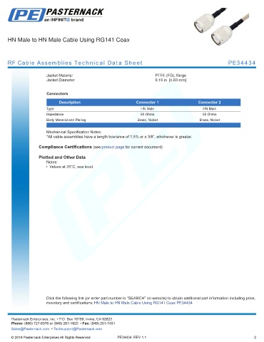 inventory and certifications: HN Male to HN Male Cable Using RG141 Coax PE34434