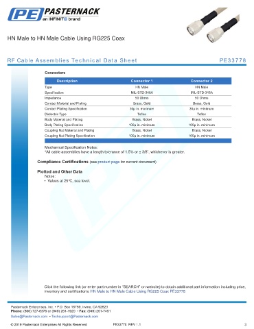 RF Cable Assemblies Technical Data Sheet PE33778