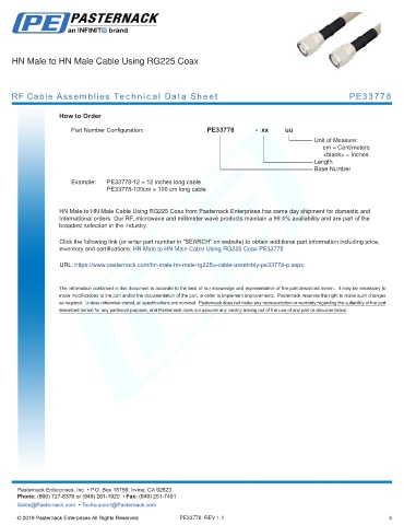 RF Cable Assemblies Technical Data Sheet PE33778