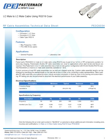 inventory and certifications: LC Male to LC Male Cable Using RG219 Coax PE3C6034