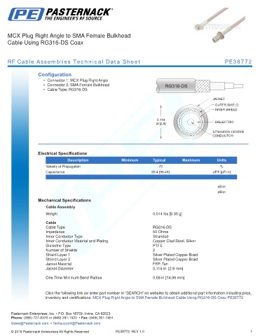 RF Cable Assemblies Technical Data Sheet PE38772