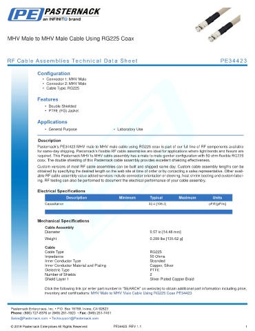 RF Cable Assemblies Technical Data Sheet PE34423