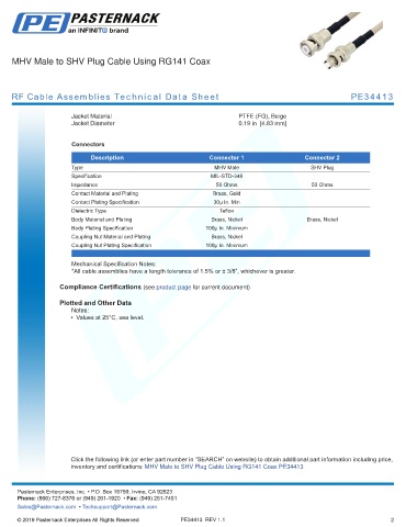 RF Cable Assemblies Technical Data Sheet PE34413