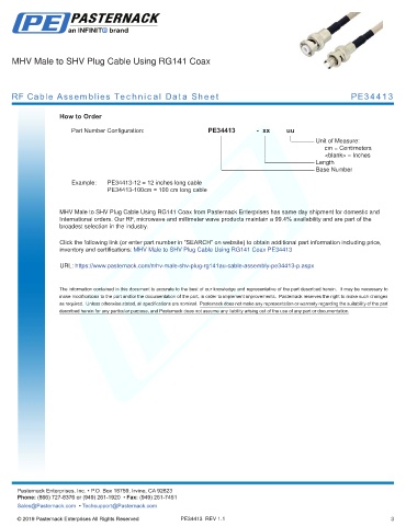 any representation or warranty regarding the suitability of the part described herein for any particular purpose, and Pasternack does not assume any liability arising out of the use of any part or documentation.