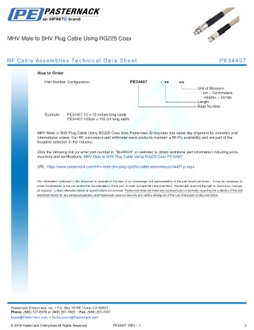 RF Cable Assemblies Technical Data Sheet PE34407