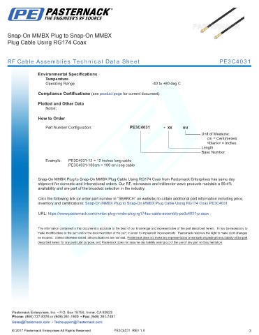 RF Cable Assemblies Technical Data Sheet PE3C4031