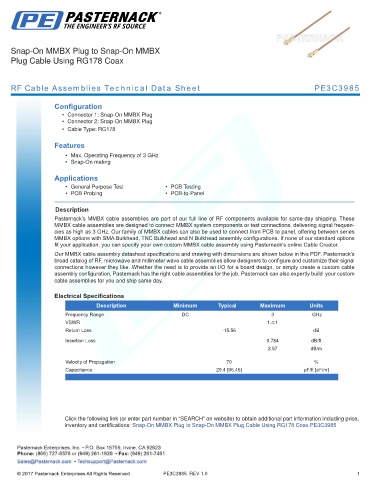 RF Cable Assemblies Technical Data Sheet PE3C3985