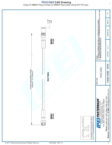 LENGTH MEASURED FROM CONTACT TO CONTACT RG178B/U DWG TITLE PE3C3985 CAGE CODE 53919