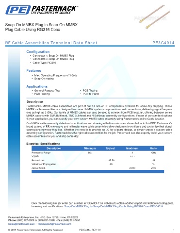 RF Cable Assemblies Technical Data Sheet PE3C4014