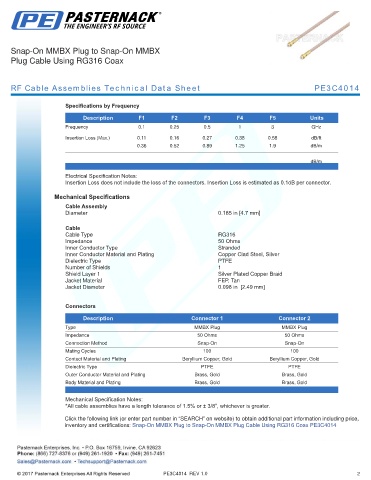 RF Cable Assemblies Technical Data Sheet PE3C4014