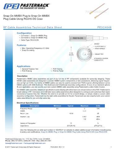 RF Cable Assemblies Technical Data Sheet PE3C4048