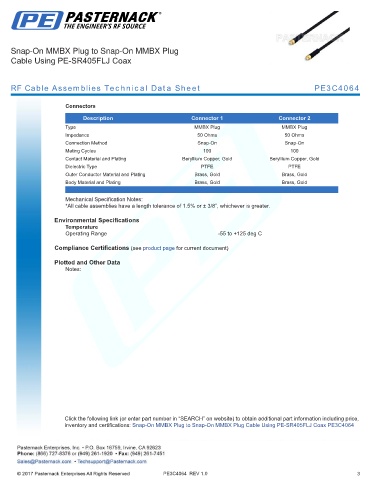 RF Cable Assemblies Technical Data Sheet PE3C4064