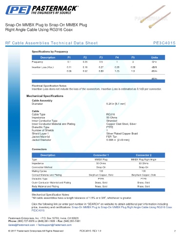 RF Cable Assemblies Technical Data Sheet PE3C4015