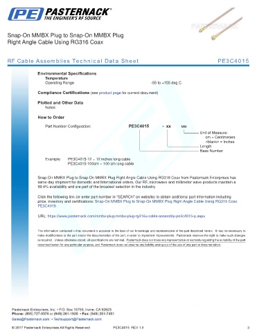 RF Cable Assemblies Technical Data Sheet PE3C4015