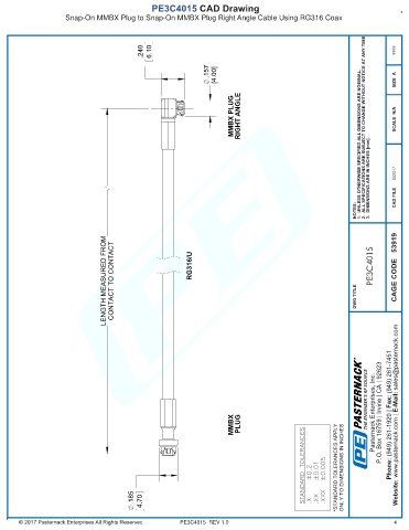 LENGTH MEASURED FROM CONTACT TO CONTACT RG316/U DWG TITLE PE3C4015 CAGE CODE 53919