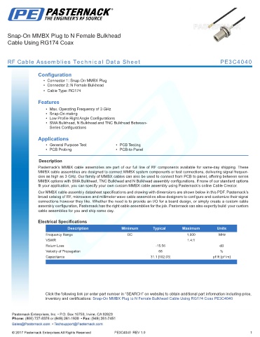 RF Cable Assemblies Technical Data Sheet PE3C4040