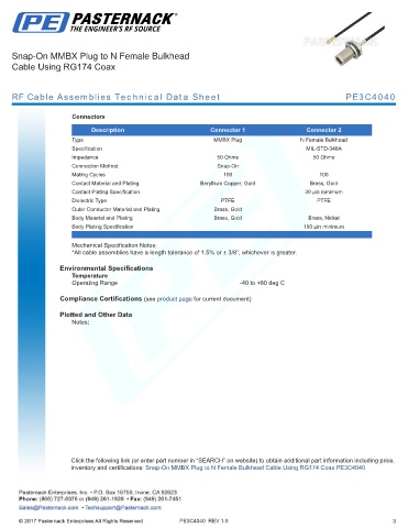 RF Cable Assemblies Technical Data Sheet PE3C4040