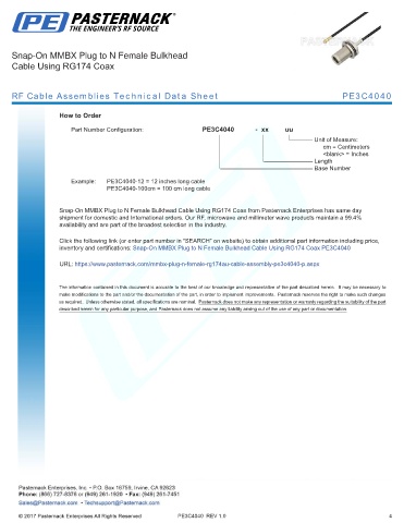 RF Cable Assemblies Technical Data Sheet PE3C4040