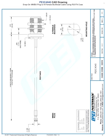 LENGTH MEASURED FROM CONTACT TO FLANGE RG174A/U DWG TITLE PE3C4040 CAGE CODE 53919