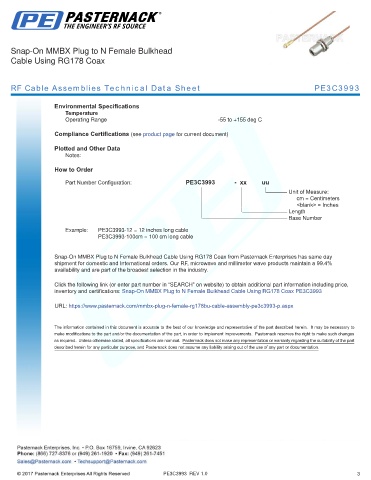 RF Cable Assemblies Technical Data Sheet PE3C3993