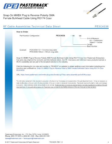 RF Cable Assemblies Technical Data Sheet PE3C4038