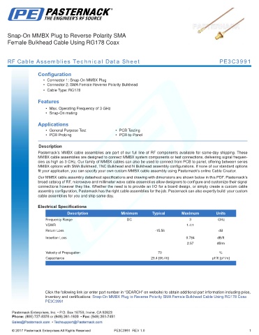 RF Cable Assemblies Technical Data Sheet PE3C3991